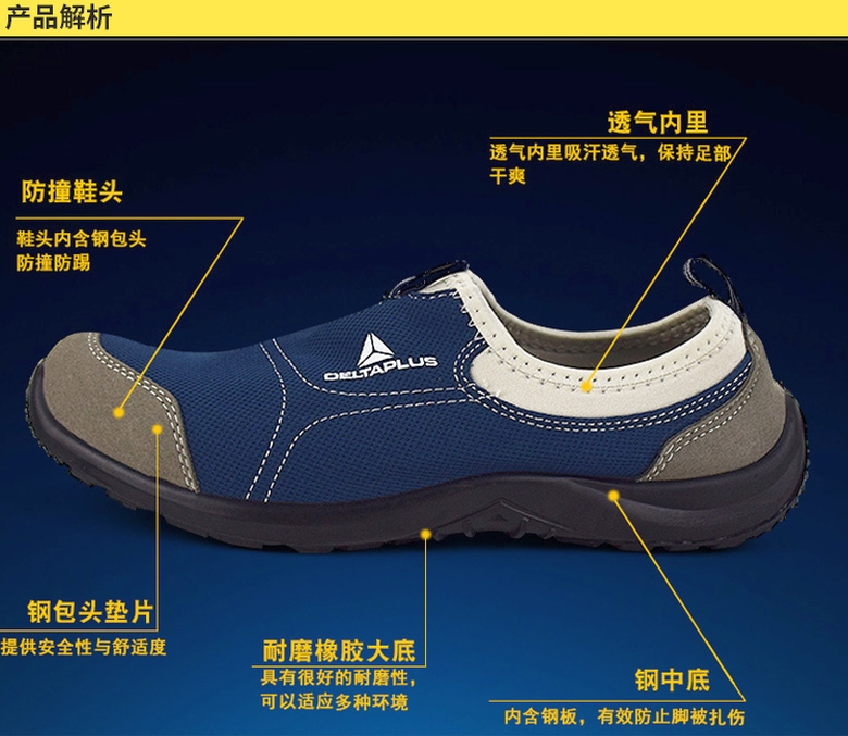 ·防砸、防静电、防油,防刺穿,穿着轻便,舒适透气,适于室内使用